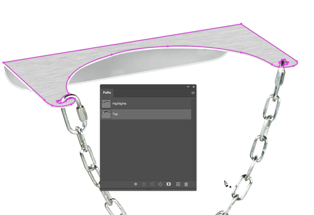Make a new workpath that outlines the top plate. Be sure to drag the first path to the New path icon to save it first.