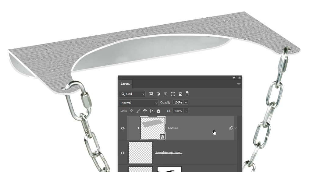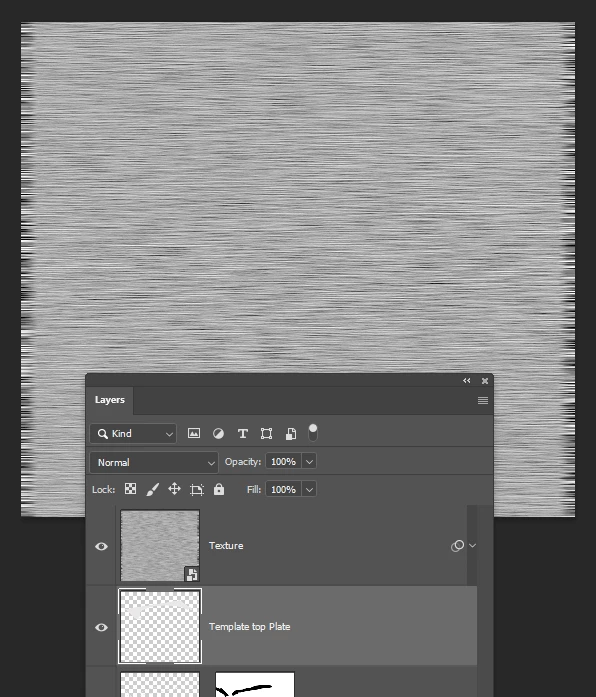 Now you need to clip the texture layer to the template layer which will make the texture exactly match the template's shape (there is an easy way to do this, but this is easier to describe)
