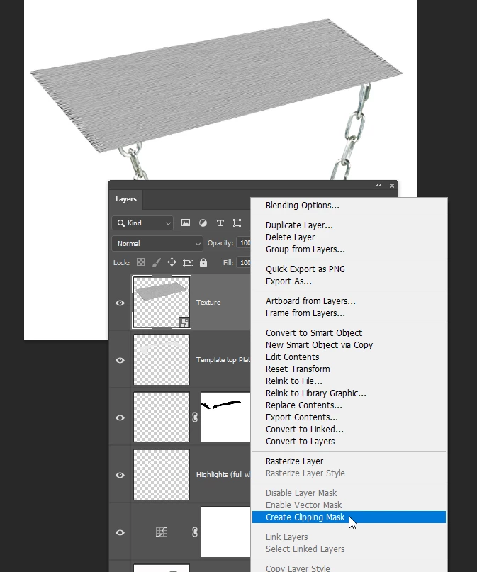 Make the texture layer a Smart Object. This is crucial.