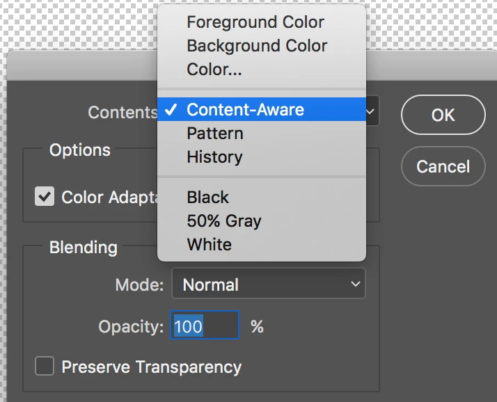 Where do I find Content Aware Fill in the menu?