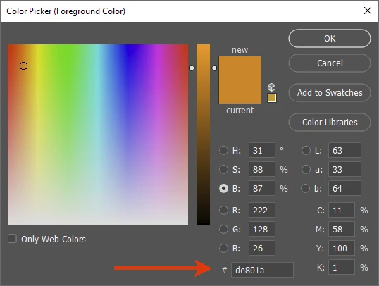 I just want to copy the hex code from an image in Photoshop so I can use it elsewhere.