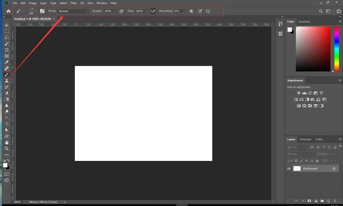 hello,as picture ,How do I get tool properties please?such as the Brush Tool mode:Normal,opacity:100%,Flow:100%,smoothing:0%