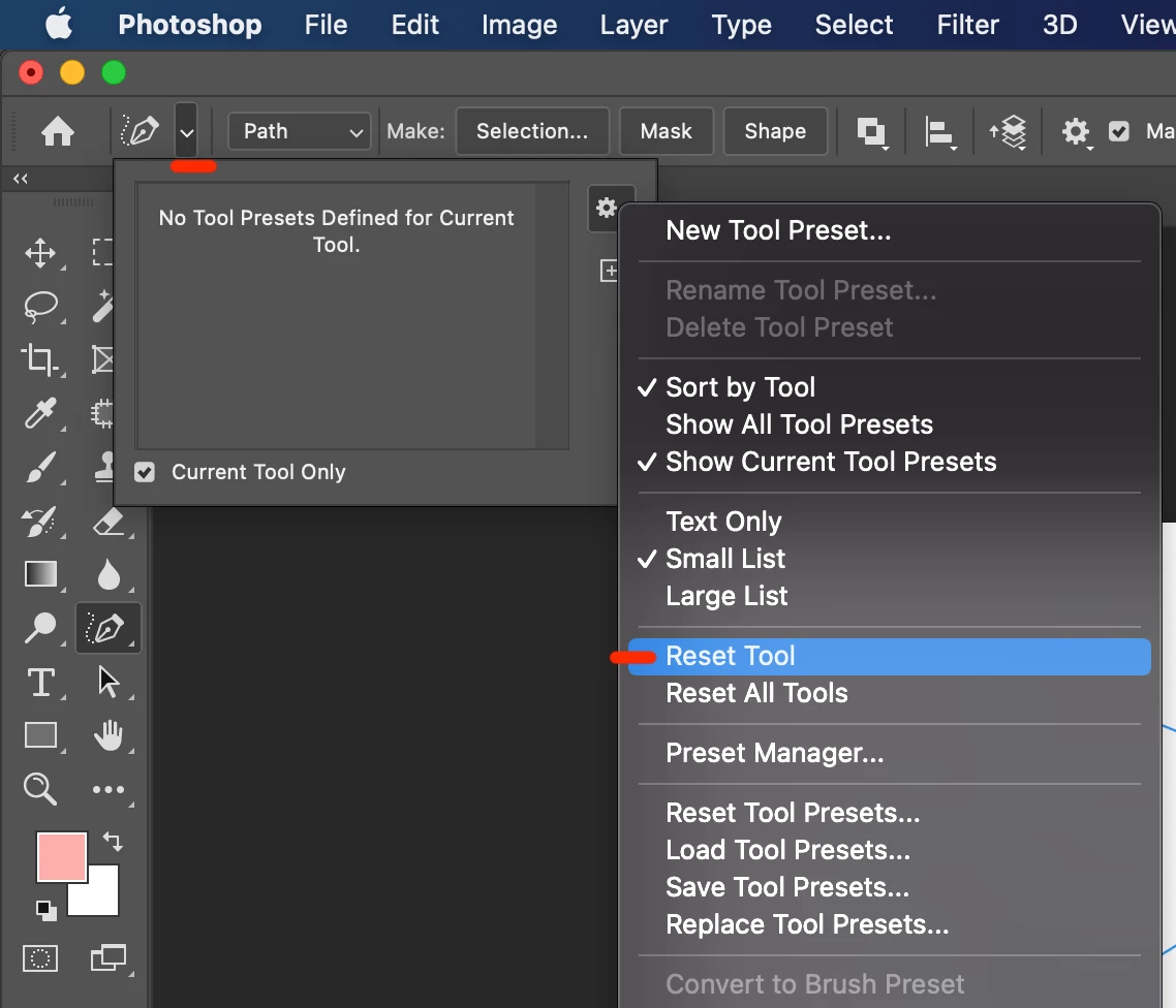 Does resetting te Tool as shown in the screenshot fix the problem ?