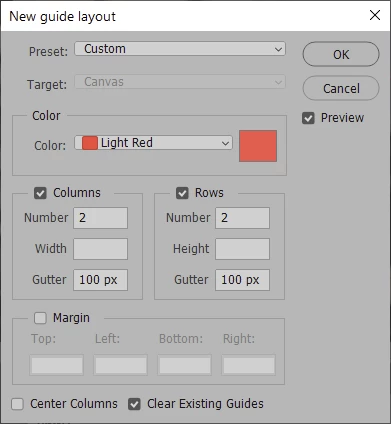 How do you create a guide layout with set inner dimensions that is centered on the image?