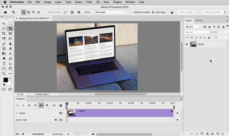 I've recently purchased a mockup of a Macbook that I'm hoping to animate by showing the screen's content scrolling using Photoshop's Timeline feature.