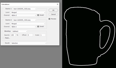 In Image calculations Subtract Alpha 1 from Alpha 2 as shown below and output as selection