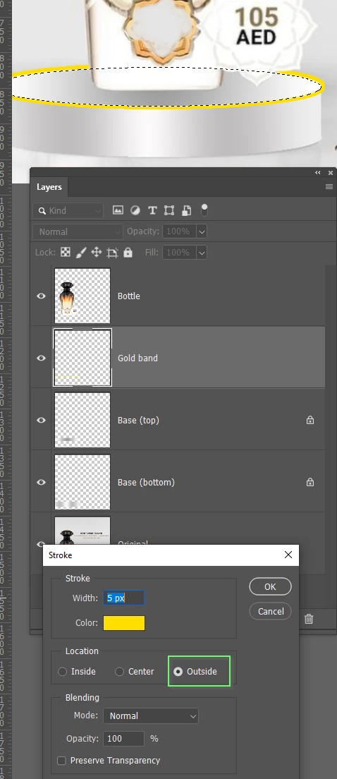 Delete the bit of gold band you don't want, and erase the top part of the band