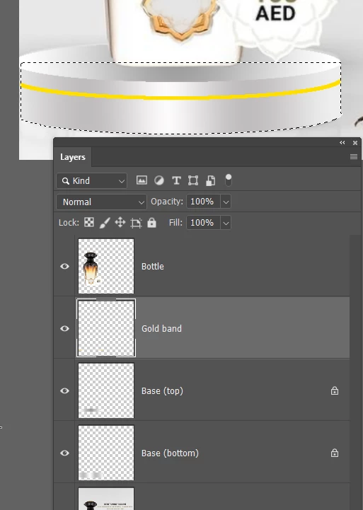 We need to brake the base into separate parts, so we'll start with the top. Use the Elliptical Marquee tool to make an elliptical selection and fill with any colour on a new layer — I usually use grey. We just need this layer to give us a record of the shape. We are not worried about its colour at this stage.
