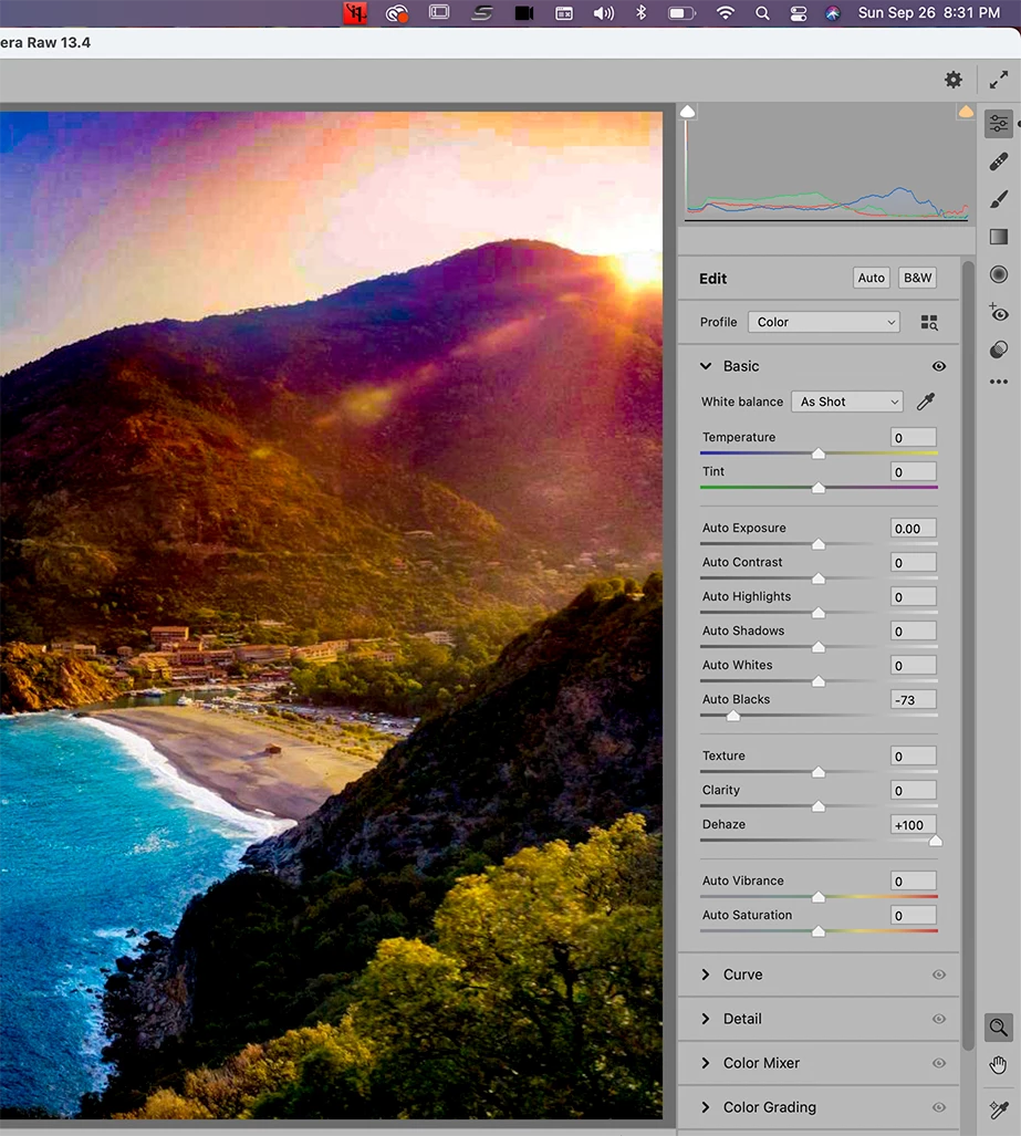 As I said before, trying to correct for a sun flare causes a whole new set of problems, but using Dehaze can be a really good option. Play with it and let us know if you have any questions.