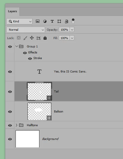 My problem is that sometimes I change the text and I need to re-align the text inside the bubble to be in the exact center, but now that the bubble is merged with the tail if I try to use the Command and click the layer of the shape in order to select it the tail will also be selected, and the only way I know to deal with this is manually deselecting the area of the tail. I tried having both shapes in different layers but because they both need a stroke the result is that they not merging visually, so I wanted to know if there's a way to solve my problem, either by having them on different layers and making the stroke work or just a simple way to select just the oval shape without the tail that I don't know of.