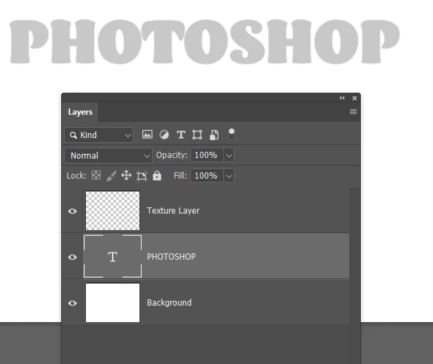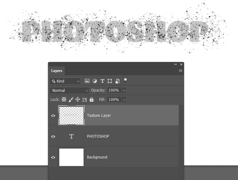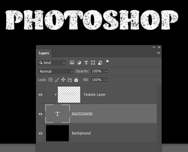 I'm going to suggest a different method as using layer masks will cause the texture to reveal layers below the text layer, and that might not be what you want.