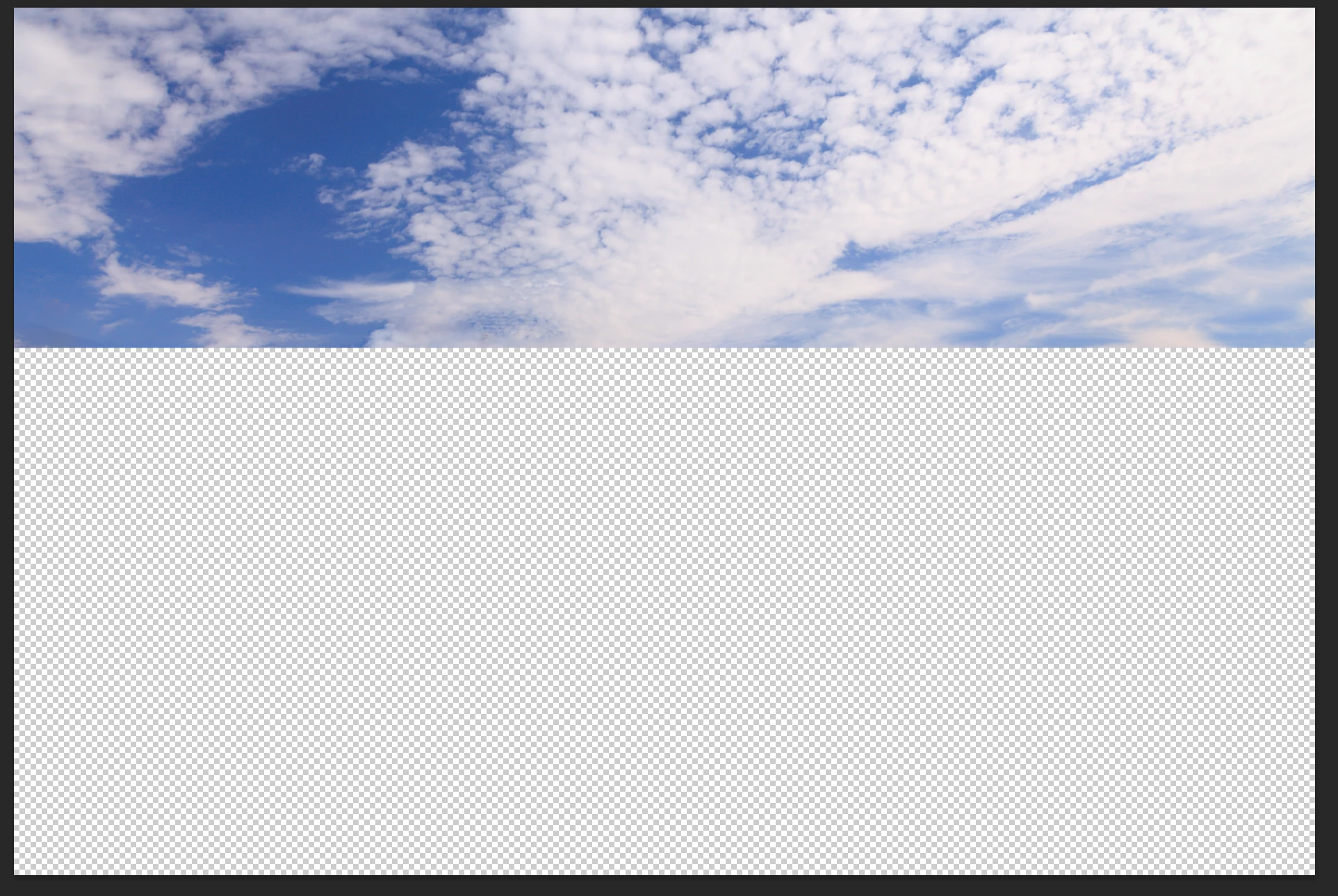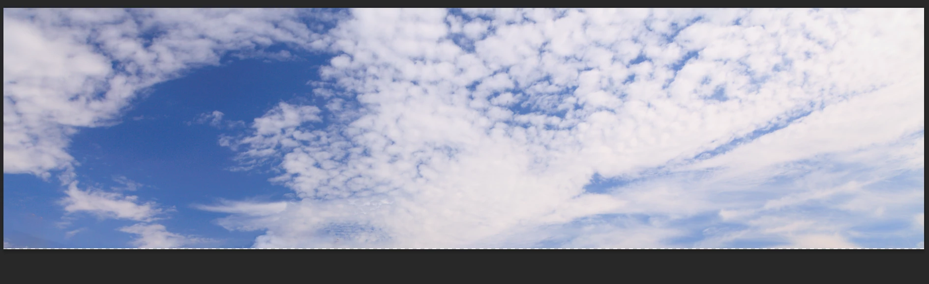 We get some interesting skies in New Zealand, so I have been collecting them when out with my wee dog.  I like to have at least 4000 pixels wide, and to get as much height as I can.  So I start with a best case crop and use a combination of Free Transform > Warp and Content Aware Fill to take out what's left of the foreground after cropping.