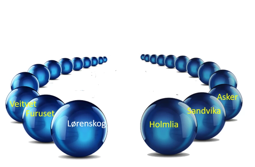 How can I make the red pearls large, and the green pearls also large, while the white pearls and the black pearl keep a medium size?