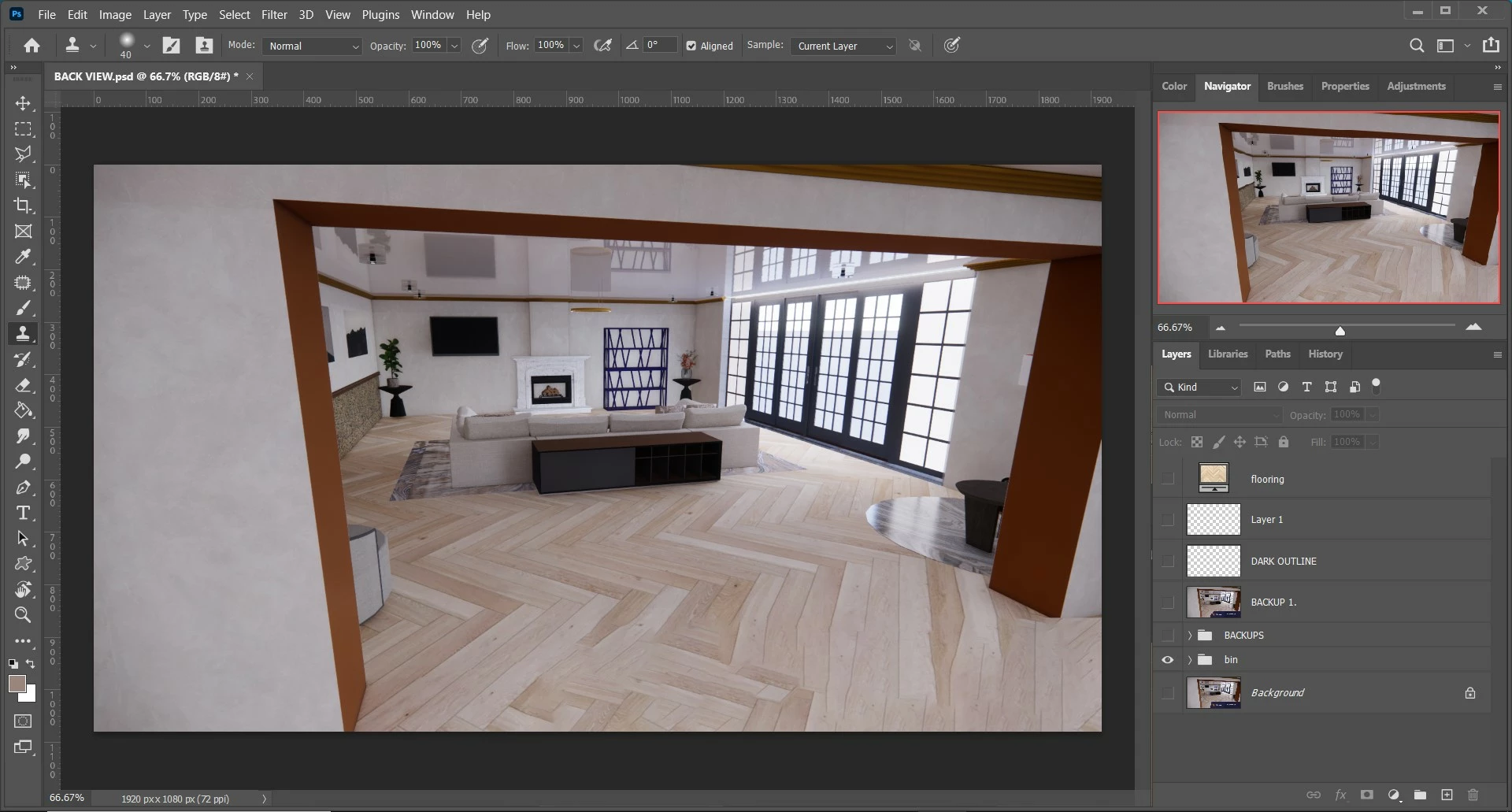 - I have used the spot healing brush and the healing brush to clone the pattern, but having problems as my render that has a pattern is at an angle, making it difficult for me to line up each click to blend out the label.
