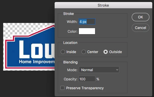 Now lets go to Edit > Stroke to apply a 4 pixel Outside stroke (So it doesn't cover the red part of the image). Save the image as a png.