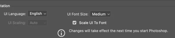 I have installed Adobe Photoshop on my MacBook m2, All the tool icons and interfaces show up too small, creating trouble for me. and the UI scaling is locked. How do I fix it?