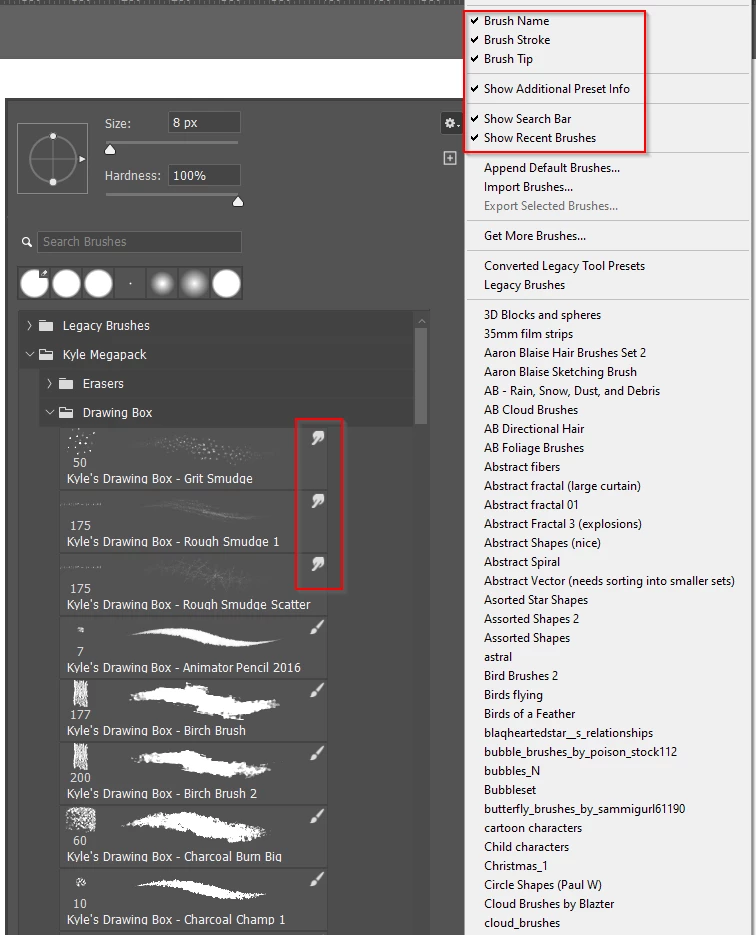 Note that the first three presets in my screen shot are for the Smudge tool, and selecting those will change whatever you are using to the smudge tool. It is possible to prevent the tool change by holding down the Ctrl (Cmd) key when selecting a preset.