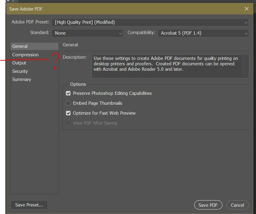 As I was saving my file in PDF for print, I can't find the Marks and Bleeds section for me to be able to create trimmarks on my file. (this is on Photoshop.)
