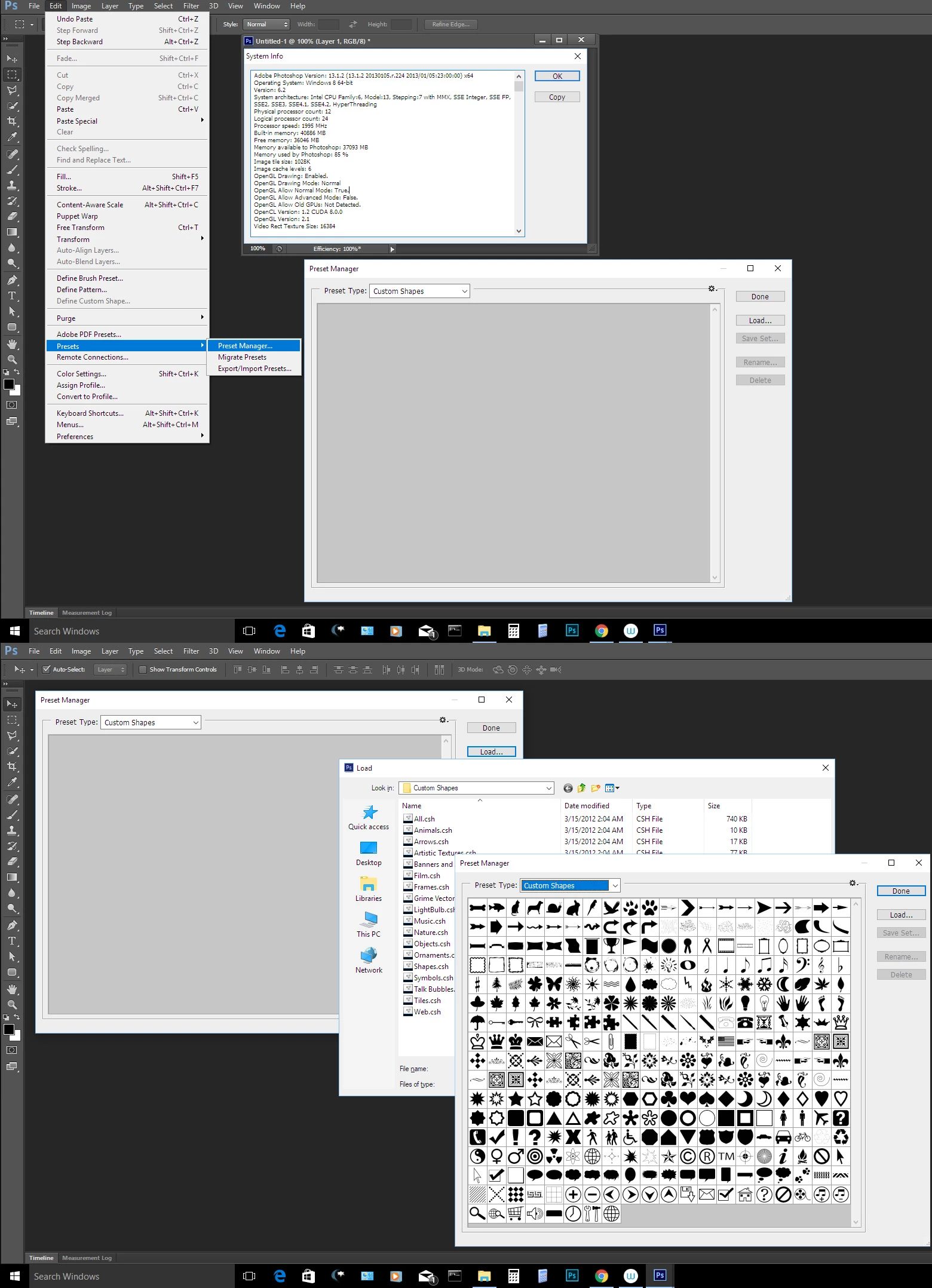 I want to create a logo in Photoshop CS6 with a filled circle but i dont have that shape, ive watched some videos and they told me to press the little setting thing in the upper right, they said it is supposed to say " all " but it doesnt say " all ".