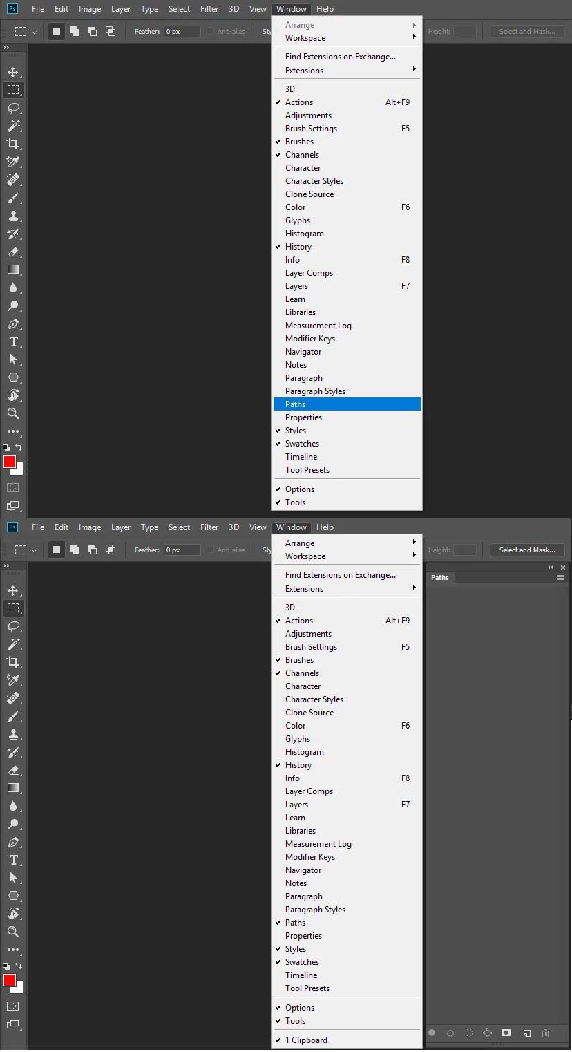 I'm having trouble finding Paths Panel