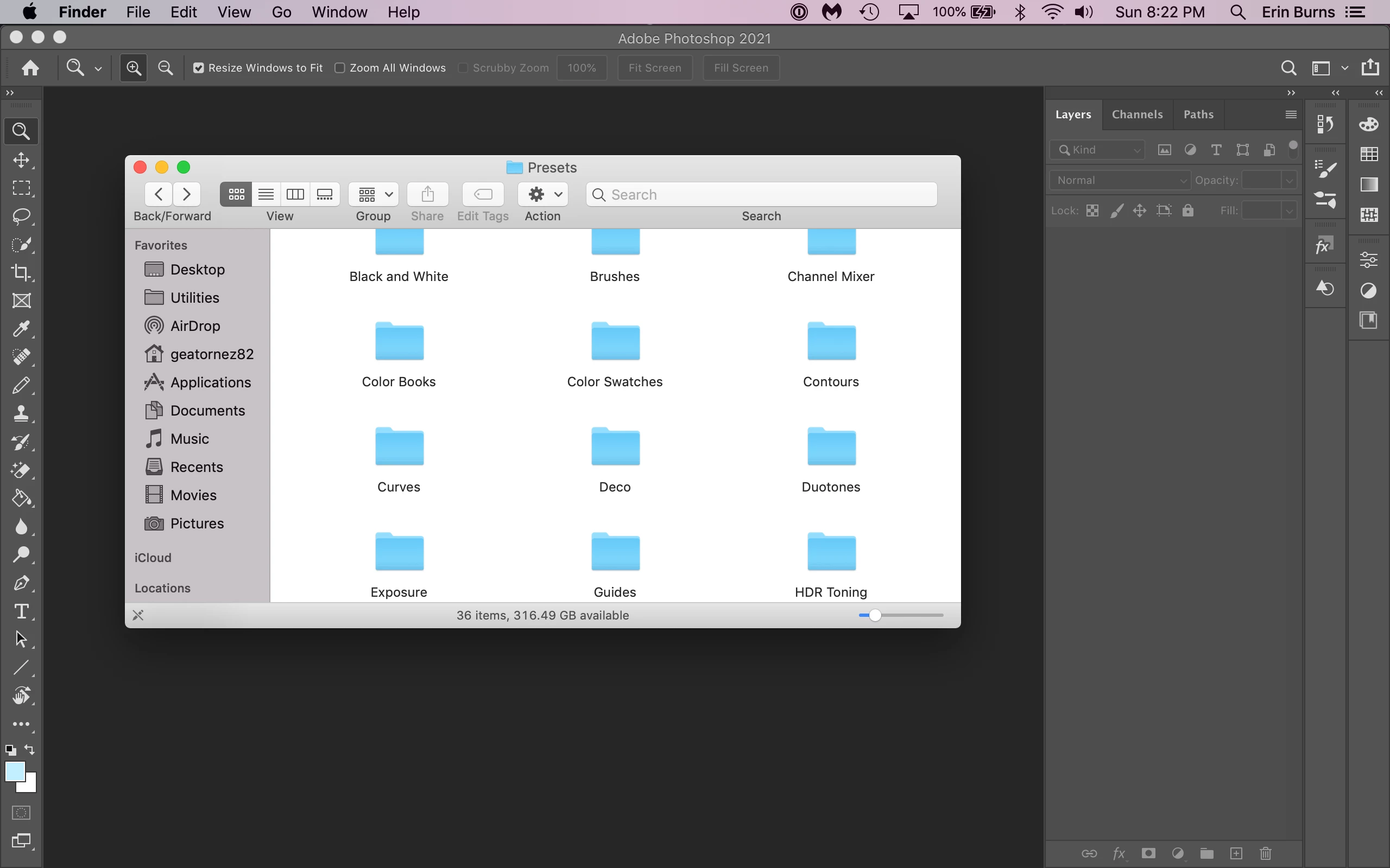 As you can tell, I'm on a Mac, and it's MacOS Mojave Version 10.14.6. Photoshop is Photoshop 2021, version 22.0.0 (the newest update is not compatible with my computer, and I DON'T want to switch to Catalina right now, because Catalina is NOT compatible with a lot of the games I have downloaded).