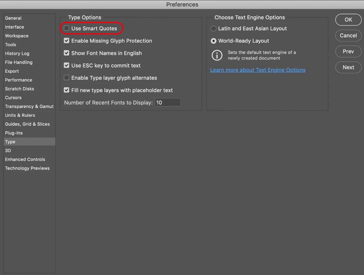 I am seeing a strange behavior that I can't explain. When typing text, if I type an apostrophe (') a greater than sign (>) appears instead. If I type (>), the screen displays (>), just like it should. It does this for every font. If I go to Type==>Panels==>Glyphs and double-click on ('), I get the same behavior.