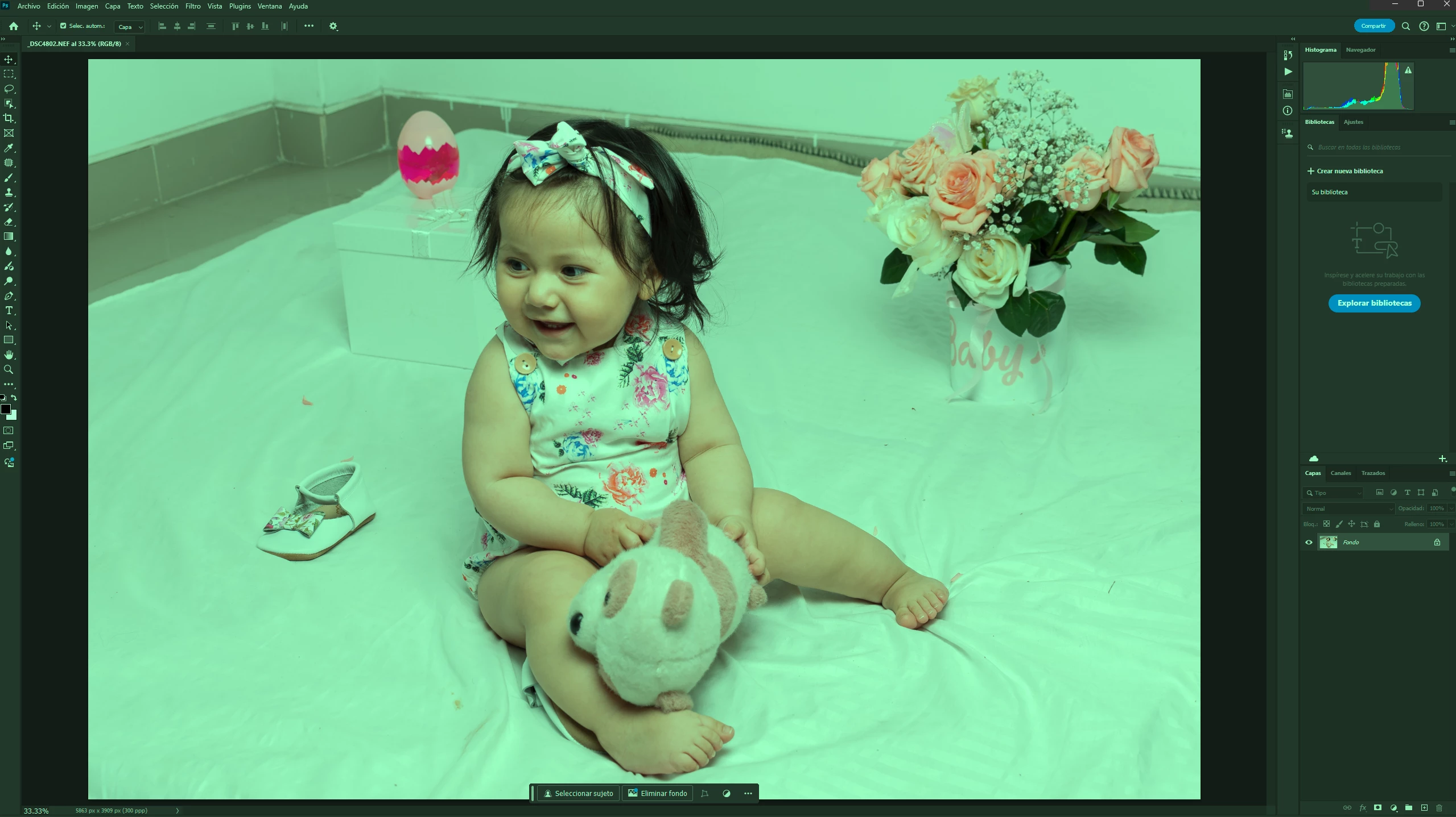Interfaz de photoshop tono verdoso