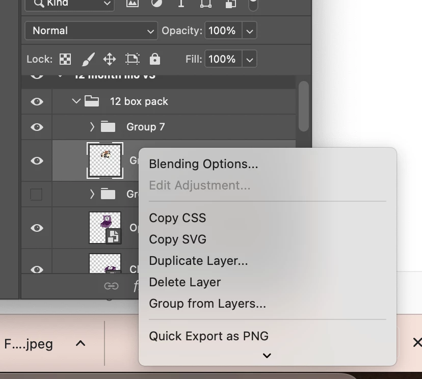 Additionally, I'm having some serious issues with groups in Photoshop in this file. There are a few things I need to ungroup to edit, and when I right click on the group in the layers panel to ungroup it, nothing is happening. I've tried using Cmd + Shift + G as well and nothing is happening.