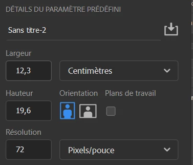 I create a new document photoshop in order to copy the image inside with the good size in centimeter: