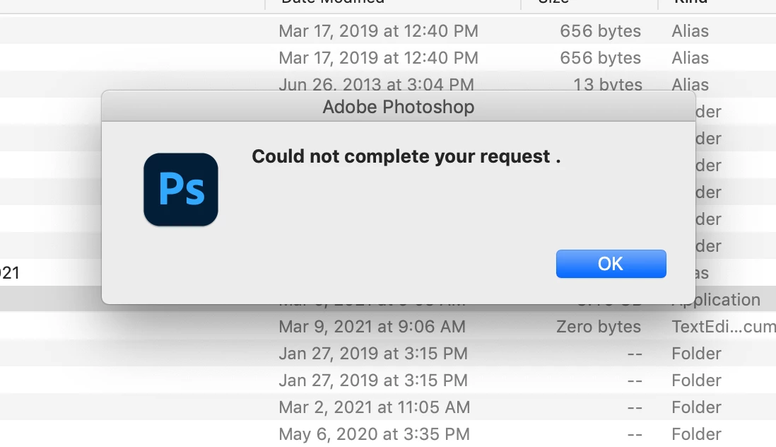 Keep getting "Could Not Complete Your Request"when launching photoshop