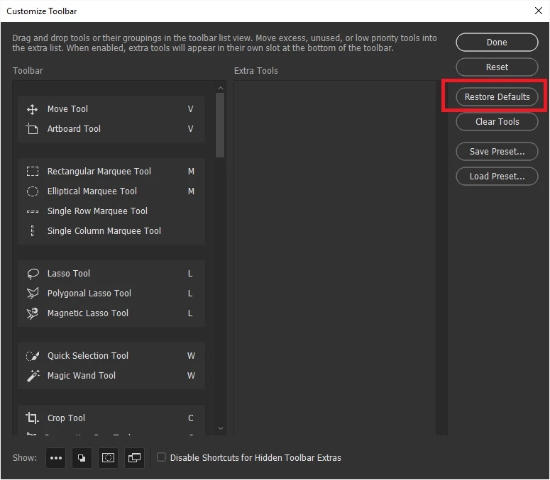 Magnetisches Lasso, Pipette etc. fehlen in der (Haupt-)Werkzeugsleiste von Photoshop