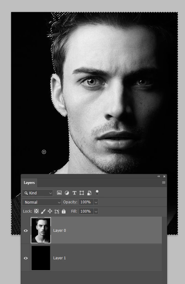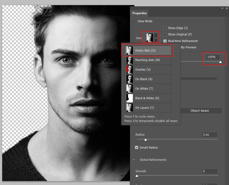Then Select & Mask is difficult to use because the black layer below is visible.