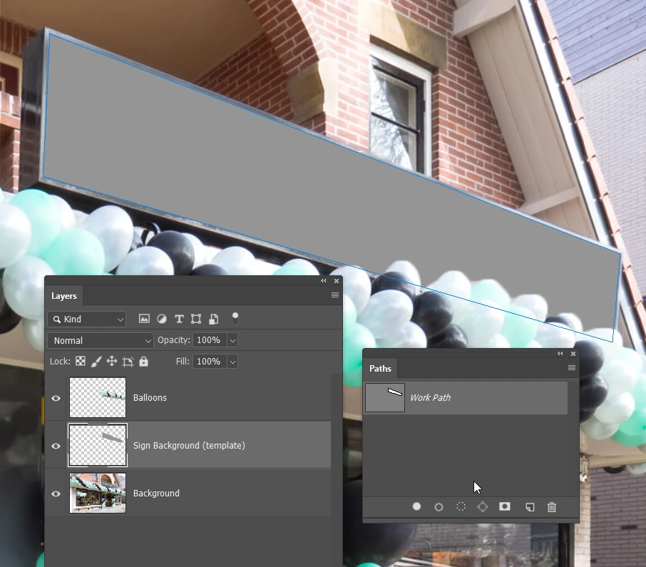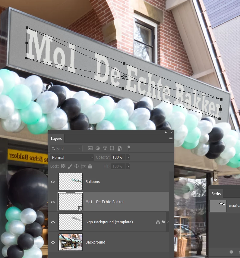 OK that, and make it a Smart Object. It then becomes a simple task to hold down Ctrl (Cmd) while dragging the corners to match the sign