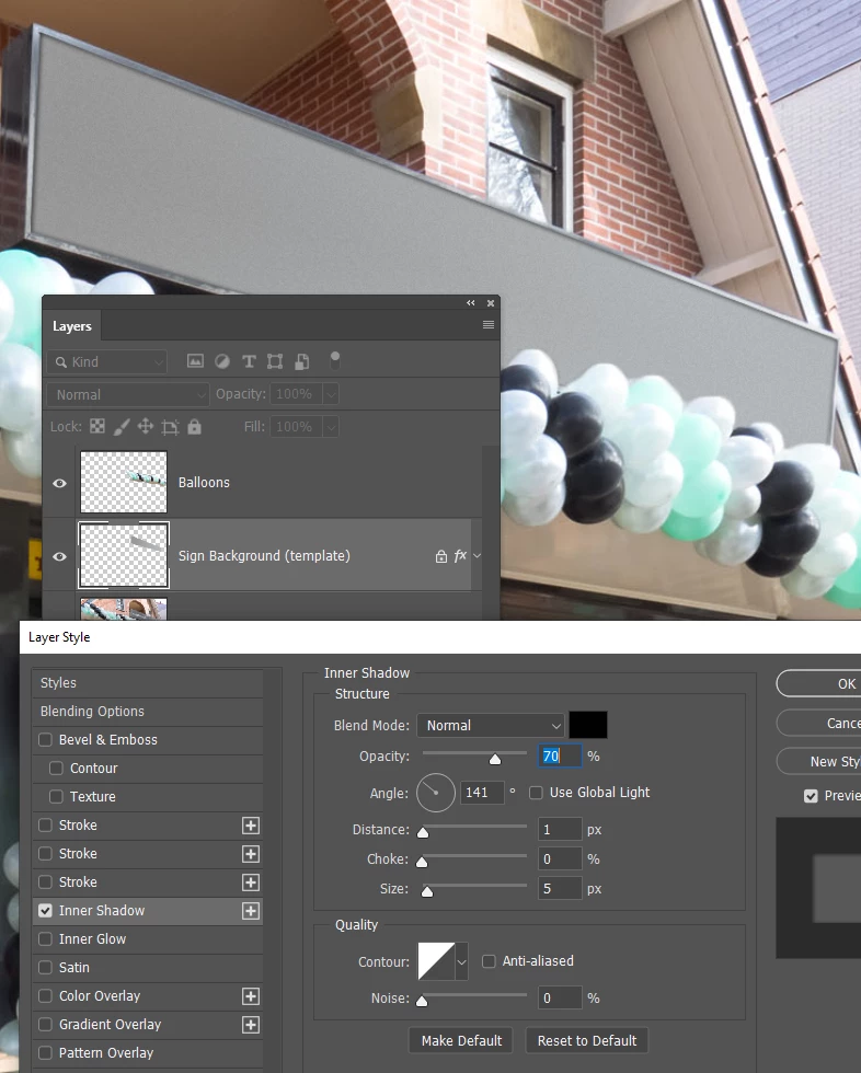 To rebuild, I would start by copying the balloons to a new layer and moving it to the top of the stack.
