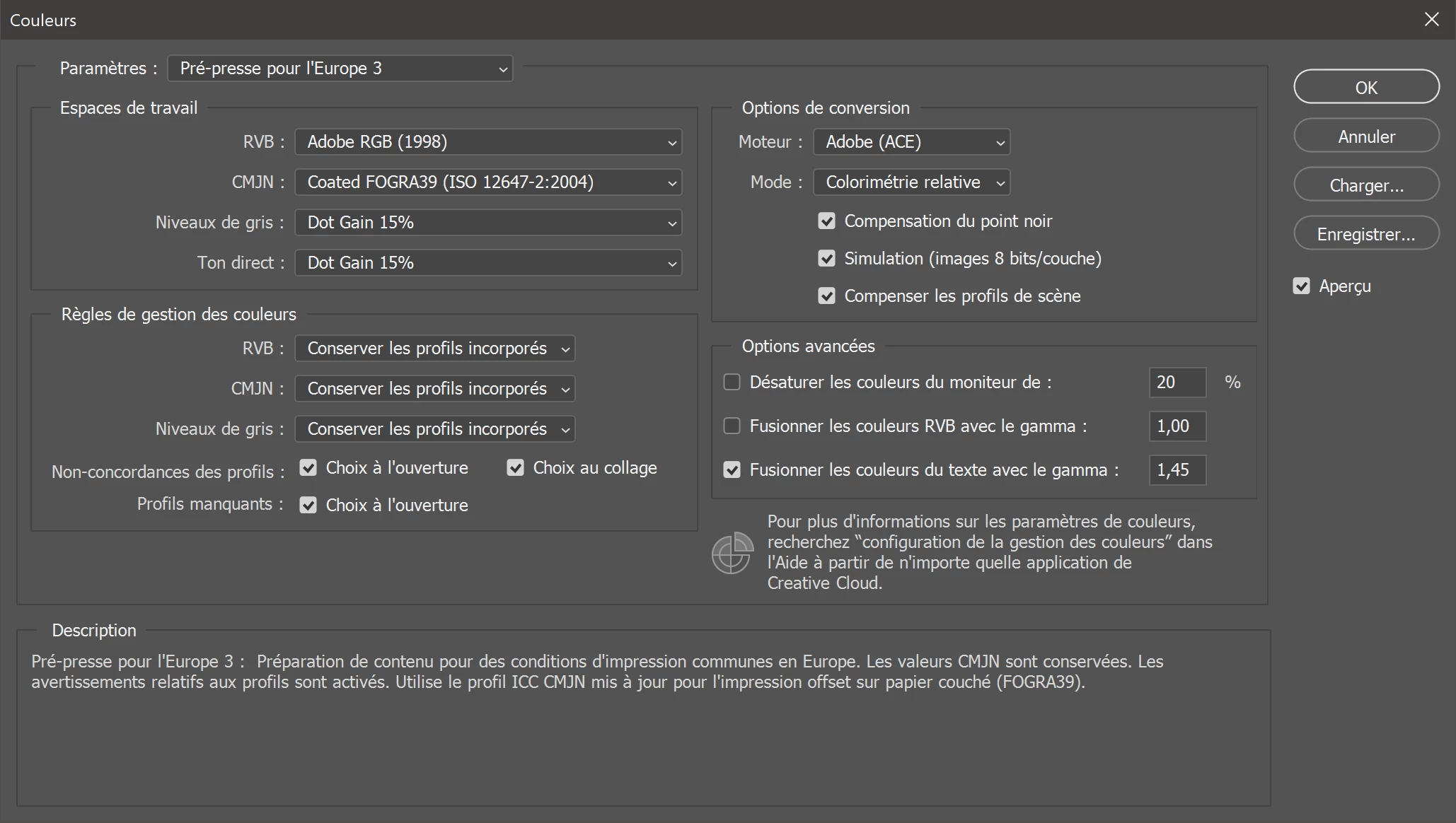 I recently changed my colour profile in Photoshop, and now when I click on any of the choices in the profile matching dialogue box, Photoshop freezes. For every image I want to open the problem repeats itself. I attach a screenshot of my choices.