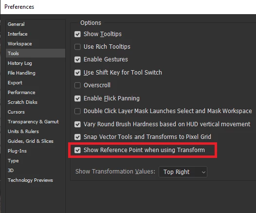 Missing Reference point in photoshop