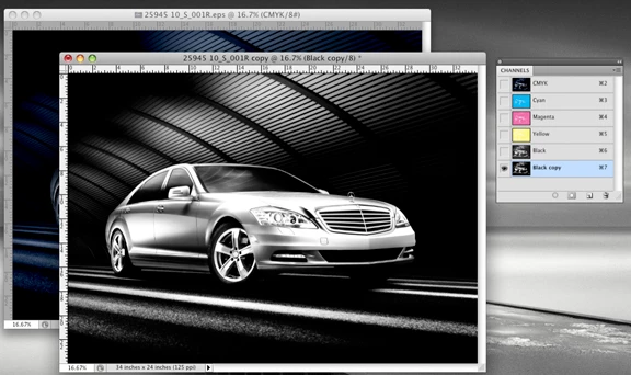 2. With this new file open, duplicate the file so that you now have two images open. In the "copy" select the black channel and duplicate that channel within the file. In most cases, your high total ink areas will be found in the "darkest" parts of your images. By duplicating the black channel, I will be using this as a selection mask.