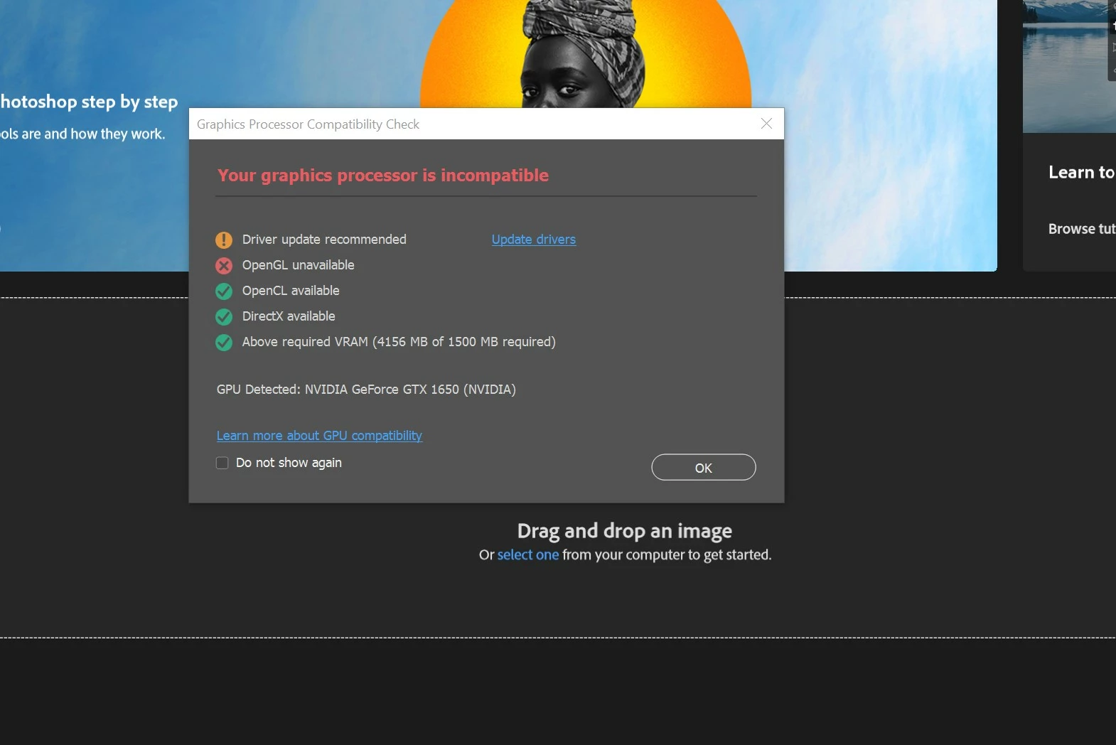 System updated to PS 23 and now shows my NVIDIA GeForce GTX 1650 isn't compatible??? That's a joke, right?