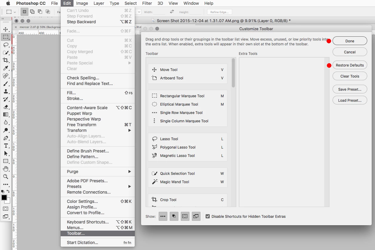 Go to Edit>Toolbar, click Restore Defaults and Done.