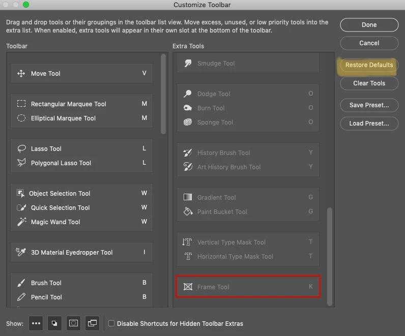 Photoshop 2021 Marquee Tools missing