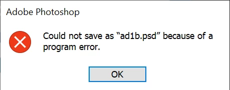 Photoshop can't save psd file "Could not save as (file name.psd) because of a program error"