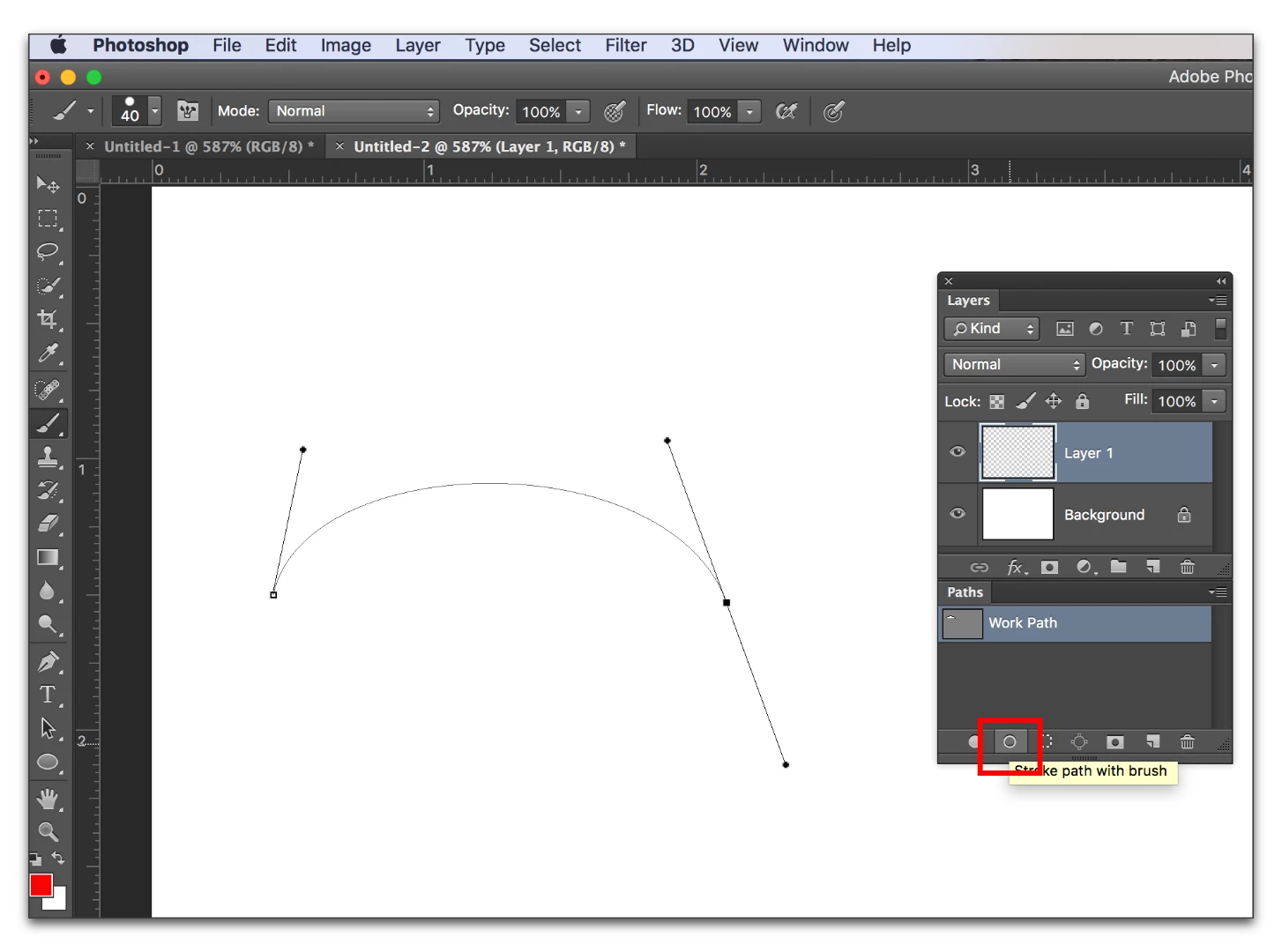 - Watched a video about how to draw a curve then stroke the path with the brush tool. I drew the same curve but my "stroke path" is greyed out and I'm told something about vectoring...no idea. Here's the video: How to Draw Curved Lines in Photoshop - YouTube