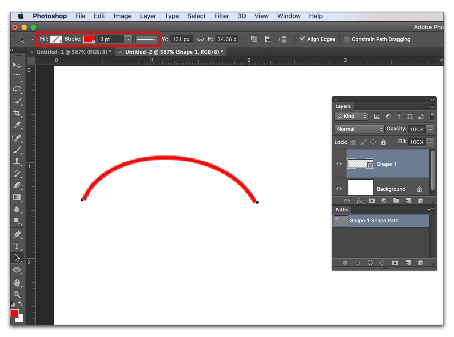 Photoshop CC 2015: How To Create A Curved Line With Thickness