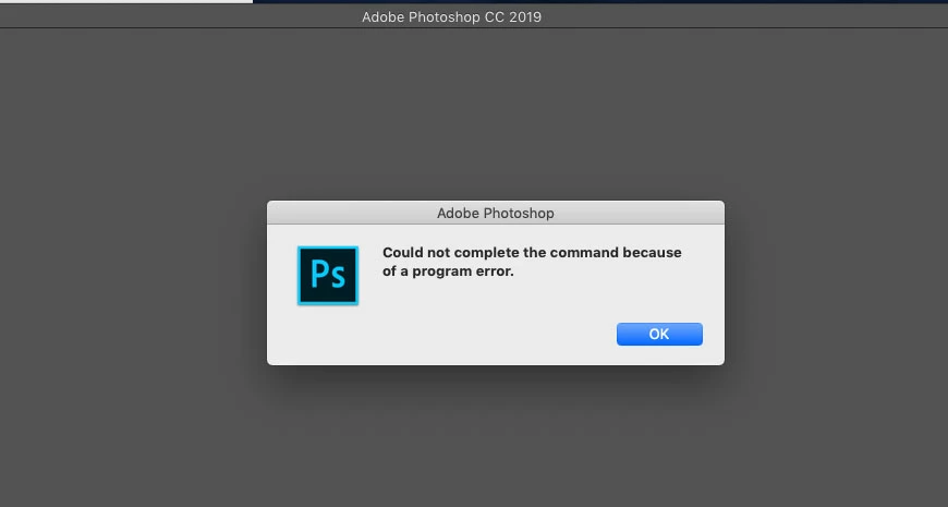 Photoshop CC 2019 program error upon launch macOS Mojave