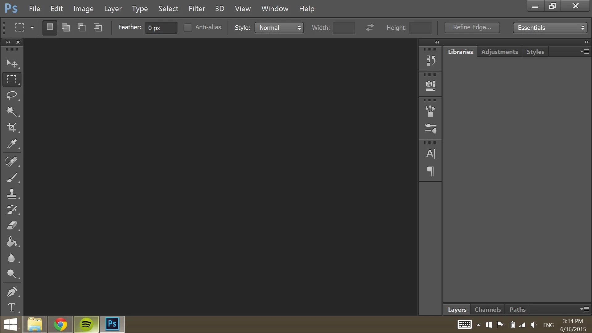 For some reason, my Photoshop work space is huge. All the buttons are way out of proportion, to the point where I cannot see the bottom of the screen. I have tried General Preferences, looking in Work Space, and just about anything I can find online. The only thing I have found that works is changing the screen resolution on my laptop, but if I do that, it screws up the other programs in CC. All the other programs are a normal size. Is there anything I can do to fix the size of Photoshop without changing my laptop's resolution?
