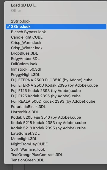 Photoshop Color Lookupドロップダウンメニューを簡単に選択する方法
