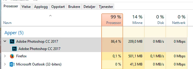 After the last update yesterday photoshop.exe takes all reminding CPU power when I just start the program on my Windows 10 computer (32GB memory).