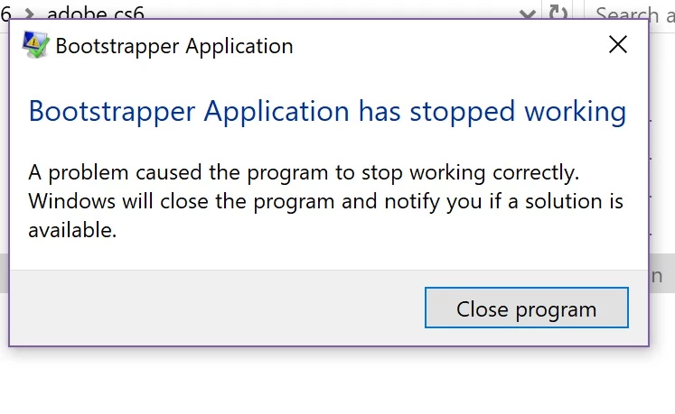 This morning I tried to install Photoshop cs6 (I don't want to pay monthly for a subscription and this is the last one you can buy without one that's why I chose cs6 ). I was able to install it successfully on my home computer but I also wanted to put it on my main laptop I always use. It was working at first so I left it alone to install while I left to run errands. I came home and something happened where my computer froze and I needed to exit and start the installer over. But when I tried to reinstall it the set-up file wouldn't open and I'd just get this pop-up: