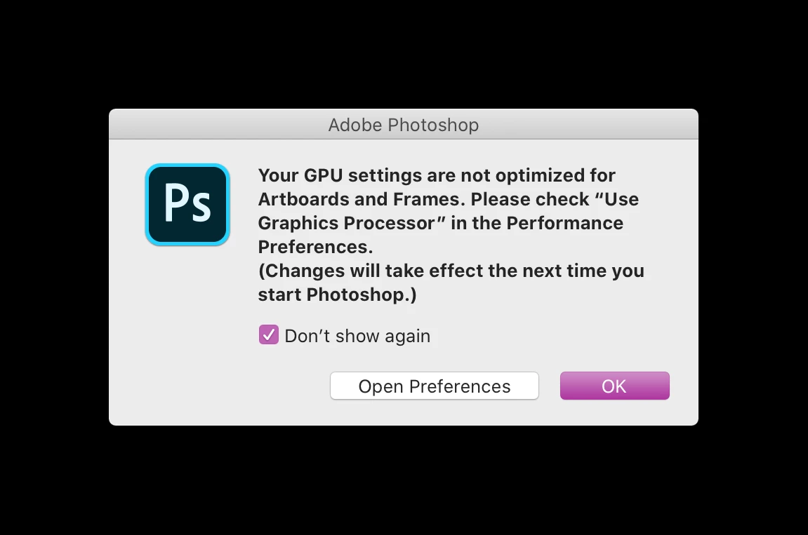 Photoshop doesn't work on 16" MacBook Pro with AMD Radeon Pro 5500M 8 GB HELP!!!