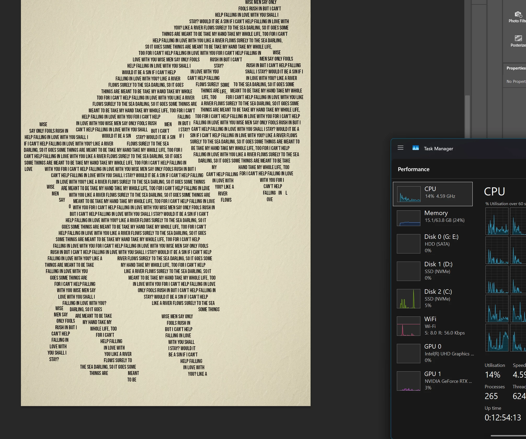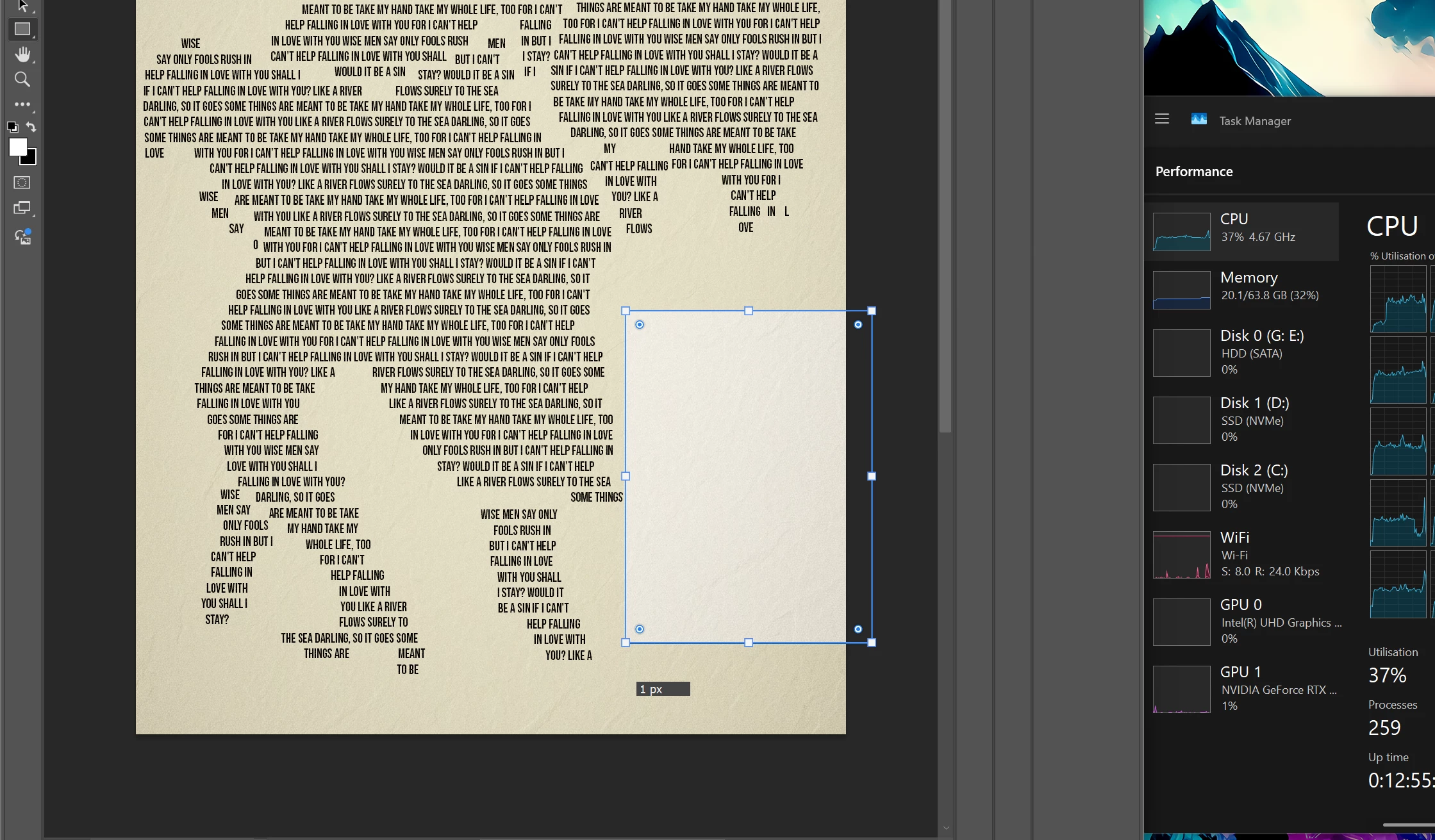 - Increase available ram for photoshop to 75% of system ram (which has never come close to actually using)